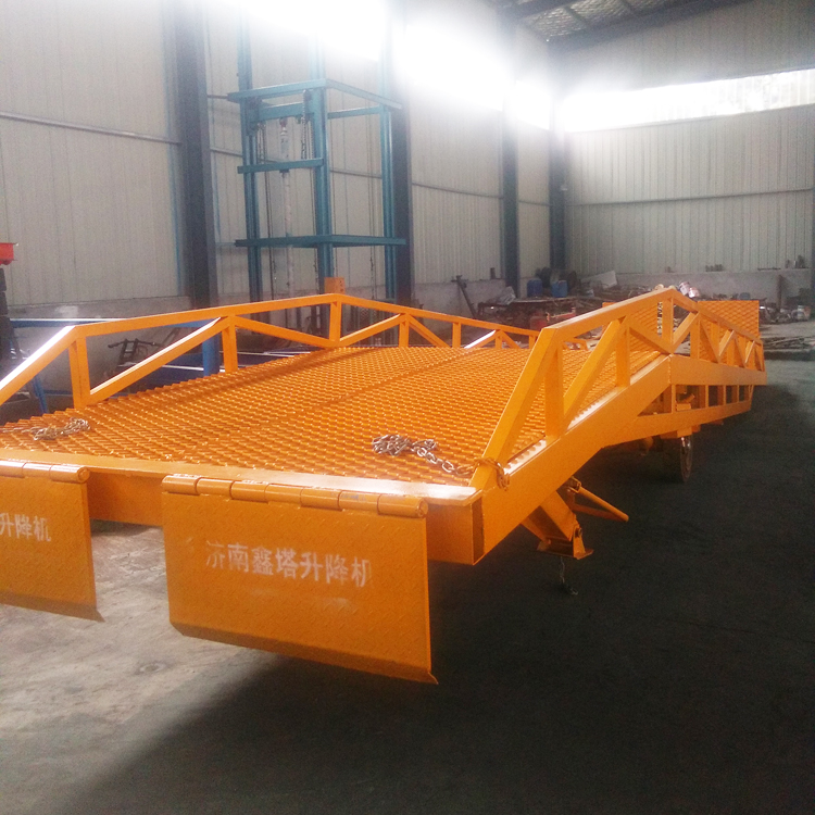 移動式液壓登車橋是與叉車配合使用的貨物裝卸輔助設備,可根據汽車車廂的高低調節高度,叉車可以直接通過本設備駛入車廂內部進行貨物的批量裝卸,僅需單人作業,即可實現貨物的快速裝卸。它使企業減少大量勞力,提高工作效率,獲取更大經濟效益。